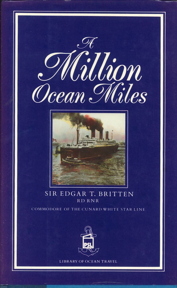 A Million Ocean Miles is a 1936 memoir by Sir Edgar T. Britten, the former Commodore of the Cunard White Star Line, documenting his extensive career in early 20th-century ocean travel. The book features 274 pages of reflections on life at sea, maritime adventures, and the history of ocean liners during that era.