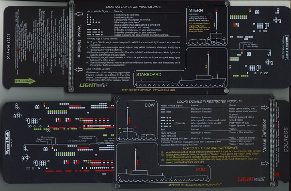 If you have ever been on the water at night and wondered if the marine navigation lights you see are from an approaching or fleeing vessel, or if the vessel is a fishing trawler or super tanker, then LIGHTRuleâ„¢ is for you. This simple-to-use vessel identification tool is inexpensive security for night travel and should be an essential part of the equipment found on any boat. LIGHTRuleâ„¢ is also an excellent aide for navigation classes and Coast Guard exams.