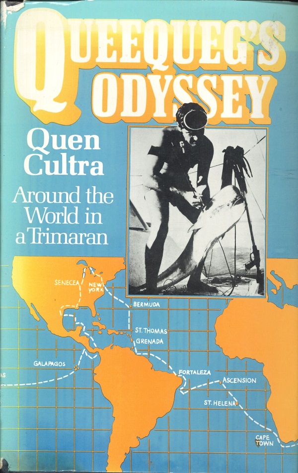 Quen Cultra built Queequeg, a 35-foot trimaran, in the barnyard on his father’s farm in Onarga, Illinois. He had little money and no previous experience in boat construction, sailing or navigation. He launched Queequeg in the Illinois River, travelled south into Mississippi River into the Gulf of Mexico, and spent three years sailing around the world. They were three years of high adventure, fascinating sights, and a communion with nature that no amount of money can buy the conventional traveller. Quen sailed with friends, and took his time, staying long enough at each port to really sample the local cultures and sights. His first storm at sea was a hurricane, he was rammed by a freighter off Madagascar, becalmed and out of fresh water in the Doldrums, attacked by sharks inside the Great Barrier Reef, and washed up on a deserted coast. Queenqueg’s Odyssey is compulsive an epic tale of global circumnavigation.